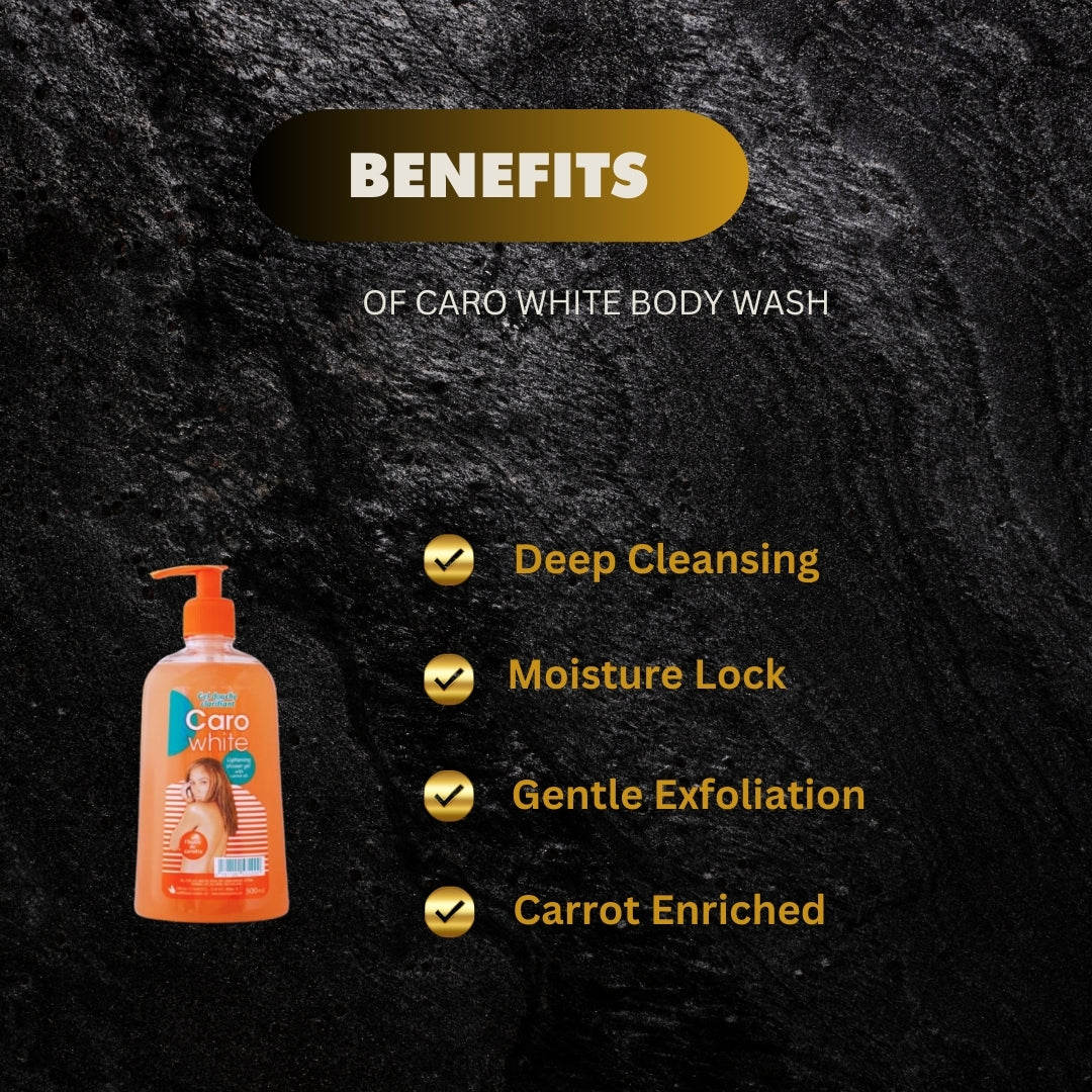 Our Caro White Body Wash with Carrot Oil is a luxurious and nourishing body wash that deeply cleanses your skin while providing it with essential vitamins and nutrients. Enriched with B-carotene, vitamins A and E, this body wash helps to protect and maintain your skin's suppleness, leaving it feeling light, manageable, and smooth. Enjoy the benefits of this fast-acting formula in just a short period of application for visible results. Pamper your skin with this luxurious body wash and experience the nourishment and care that it provides.