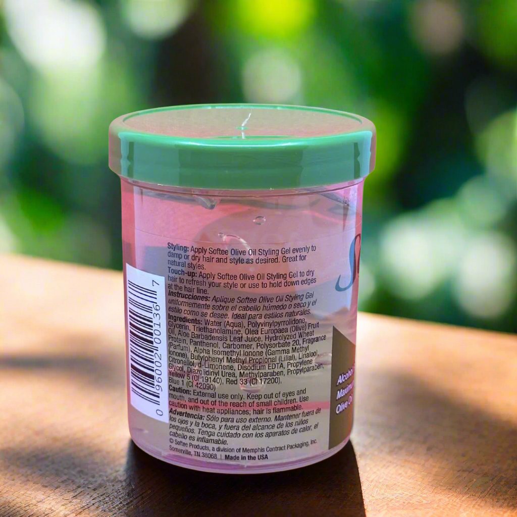 - Apply Softee Olive Oil Styling Gel evenly to damp or dry hair and style as desired.