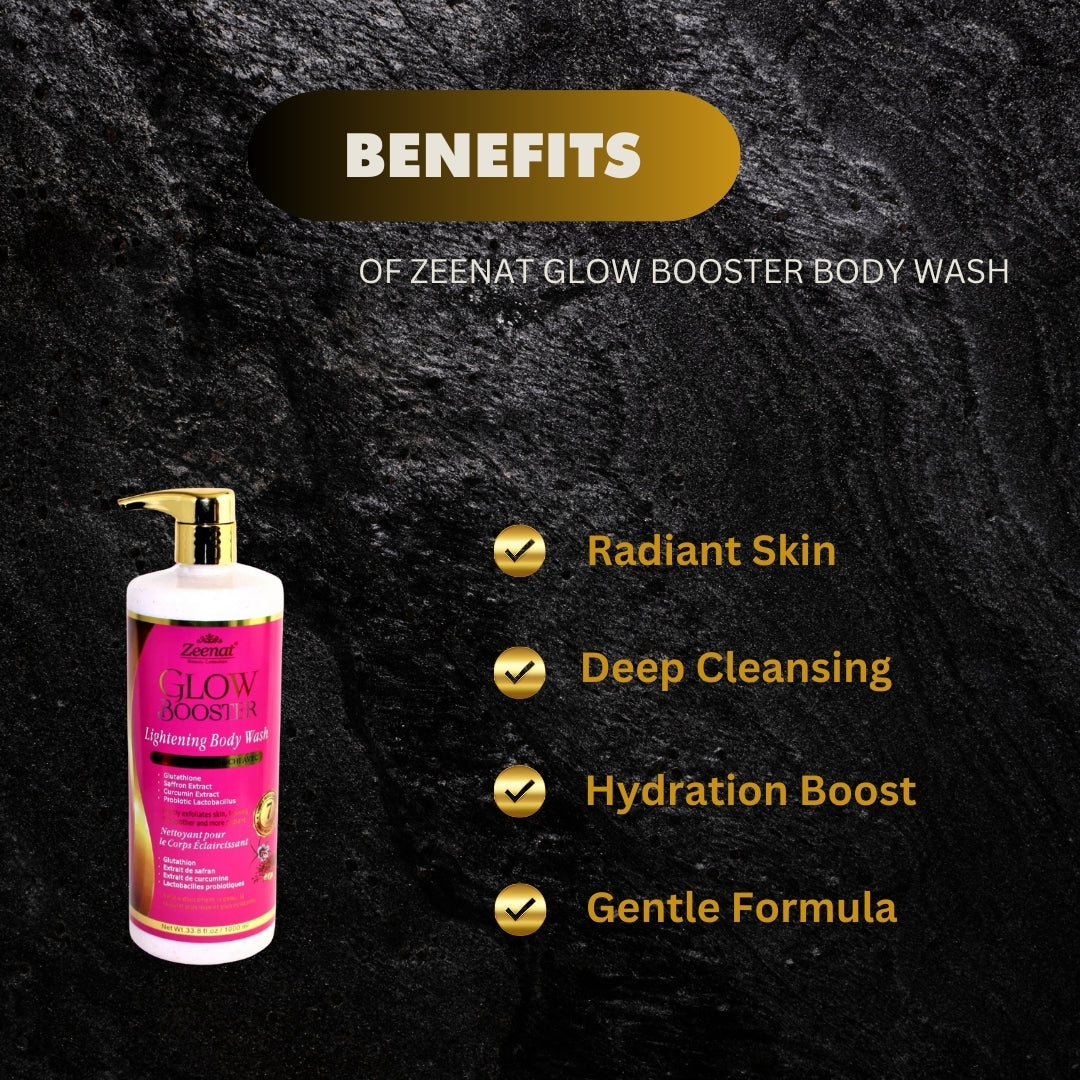 - Zeenat Glow Booster Body Wash smooths and refines skin giving a radiant appearance.