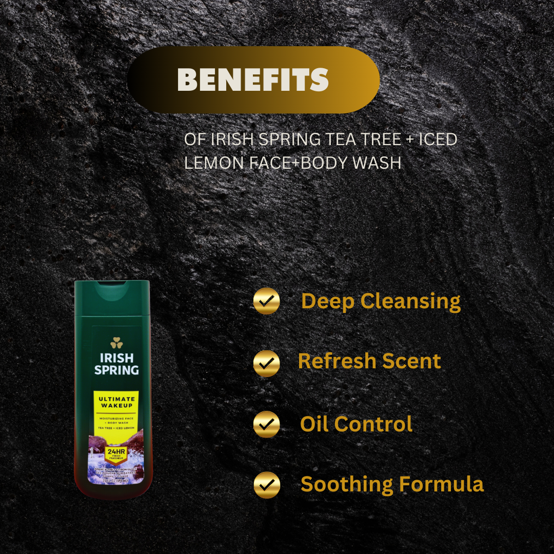Irish Spring Tea Tree + Iced Lemon Face+Body Wash 591ml