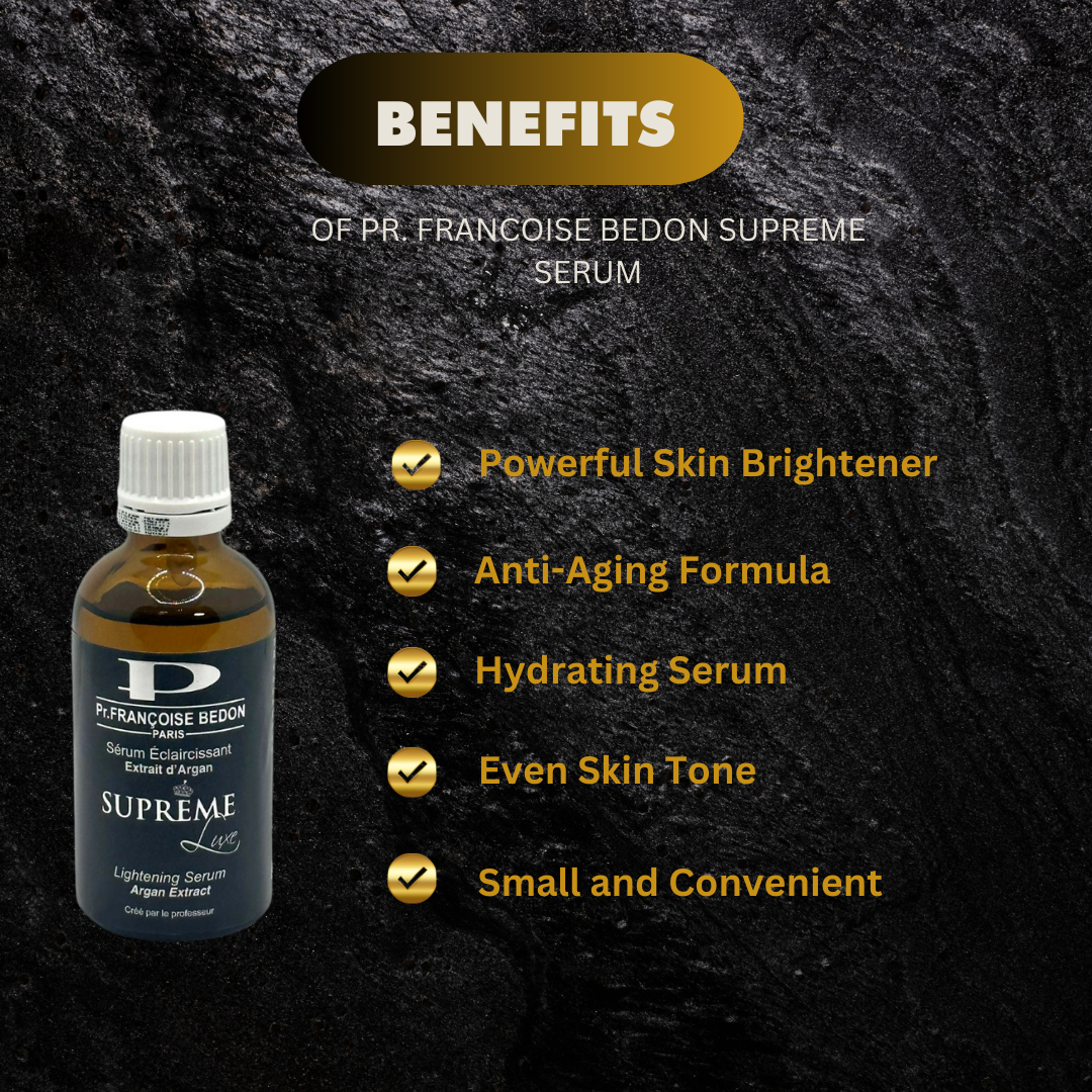 - Pr. Francoise Bedon Supreme Serum is a premium skincare product designed to brighten and even out the skin tone.