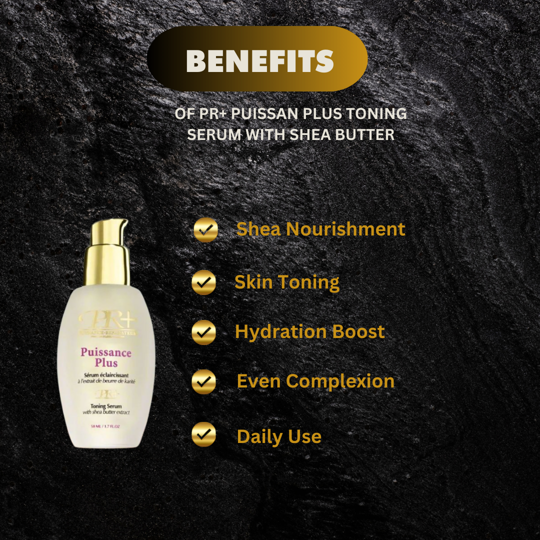 - Pr+ Puissan Plus Toning Serum with Shea Butter is a powerful and effective serum for toning and moisturizing the skin.
