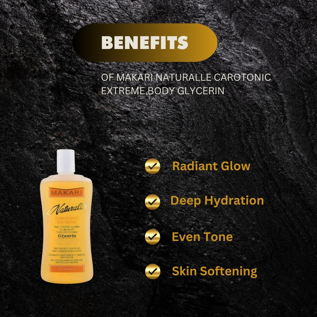 - Makari Naturalle Carotonic Extreme Body Glycerin is a nourishing and hydrating body lotion that helps to improve skin texture and tone.