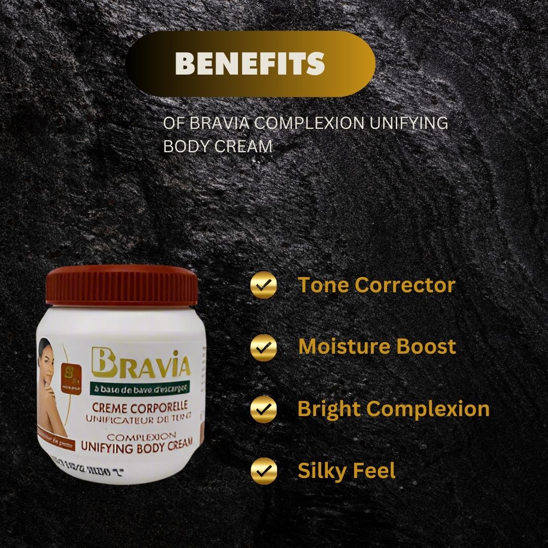 Bravia Complexion Unifying Body Cream 125ml is the perfect solution for soft and smooth skin. Enriched with snail slime, this cream helps to repair and hydrate your skin, reducing the appearance of scars, tasks, and stretch marks. Its unique formula gives you a radiant complexion, leaving your skin looking healthier and more toned. With regular use, you can ensure a beautiful, glowing complexion. The easy-to-apply cream is gentle on your skin and quickly absorbs for maximum effectiveness, making it ideal for all skin types. With Bravia Complexion Unifying Body Cream 125ml, you can be sure that your skin will be soft, smooth, and beautiful.