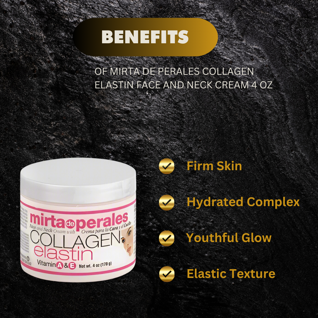 - Mirta De Perales Collagen Elastin Face and Neck Cream is a moisturizing cream designed to nourish and hydrate the skin.