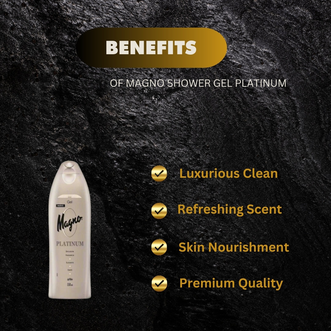 - Magno Body Wash Platinum is a luxurious shower gel that offers a deep-cleansing experience.