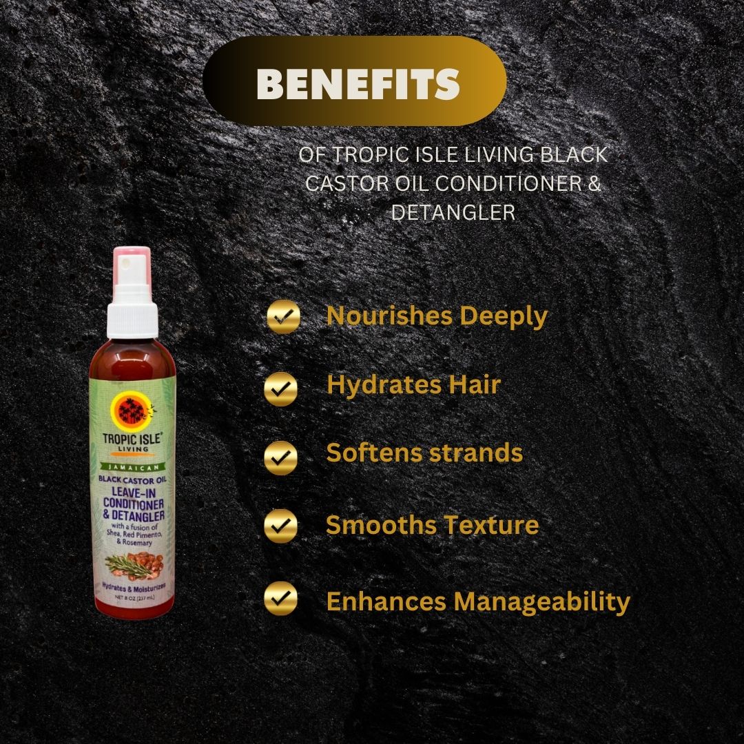 Transform your hair with Tropic Isle Living's Black Castor Oil Conditioner & Detangler. This all-natural formula, enriched with black castor oil, deeply nourishes and hydrates hair, leaving it soft, smooth, and manageable. Say goodbye to tangles and hello to healthy, radiant locks.