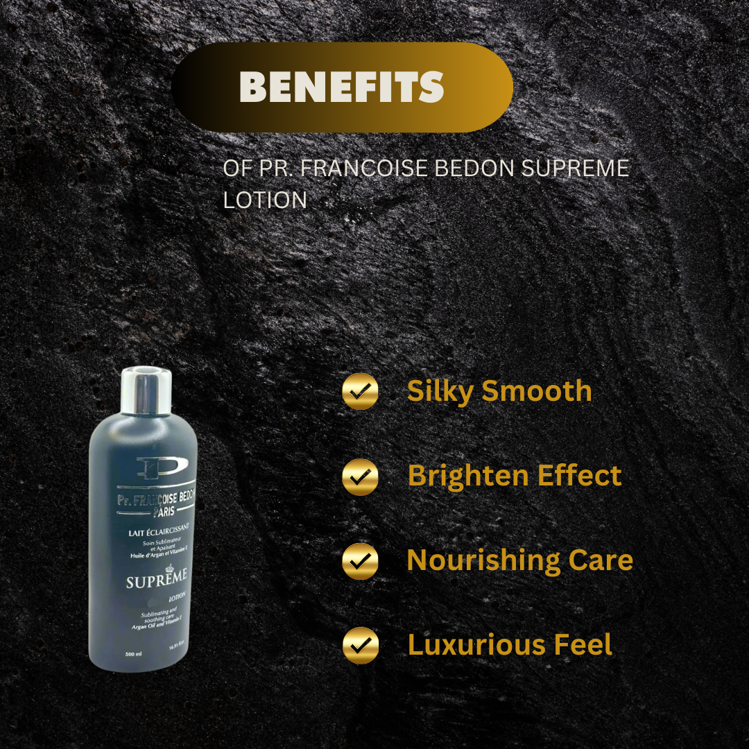 - Pr. Francoise Bedon Supreme Lotion is a premium skincare product designed to deeply moisturize and nourish the skin.