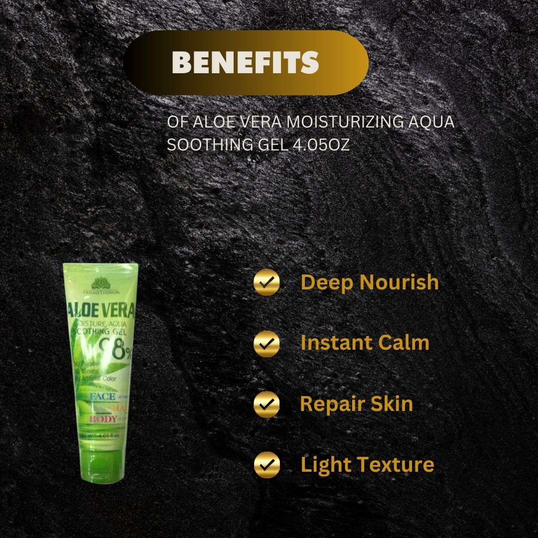 - Enjoy the lightweight, fast-absorbing formula of Aloe Vera Moisturizing Aqua Soothing Gel as it hydrates, soothes, and revitalizes your skin. Feel the softness, smoothness, and refreshing sensation that this gel provides, leaving your skin at its best.