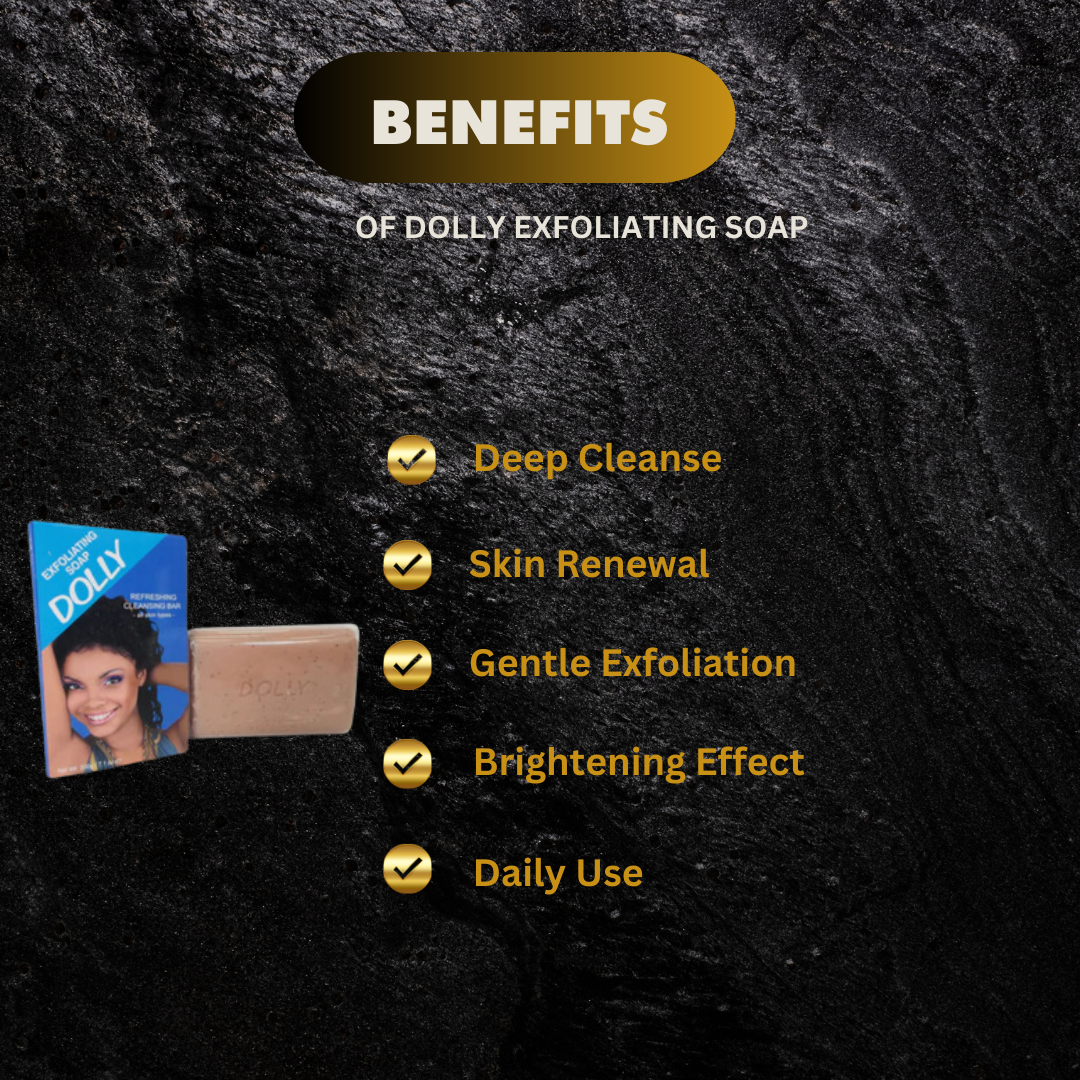 Dolly Exfoliating Soap is formulated with natural aloe vera to gently cleanse and exfoliate your skin. The soap is enriched with nourishing antioxidants and botanical extracts to leave your skin feeling soft, smooth, and refreshed. Its unique blend of natural ingredients helps to reduce the appearance of wrinkles and fine lines while removing dirt, oil, and other impurities. Experience a soothing and calming effect with the refreshing scent of aloe vera. Enjoy the perfect combination of gentle yet effective cleansing with Dolly Exfoliating Soap 200g.