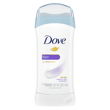Dove Invisible Solid Fresh Antiperspirant Deodorant Stick is the perfect choice for all-day underarm protection and a fresh scent. Formulated with ¼ moisturizers, this antiperspirant for women leaves your underarm skin feeling soft and smooth while providing up to 48 hours of protection from sweat and odor. It's easy to apply, gliding on with no white residue and no alcohol (ethanol) to irritate or dry out your skin. Plus, this cruelty-free antiperspirant is guaranteed by PETA, so you can feel confident that you're using a product that won't harm animals. With Dove Invisible Solid Fresh Antiperspirant Deodorant Stick, you can enjoy long-lasting freshness and the assurance of all-day protection.