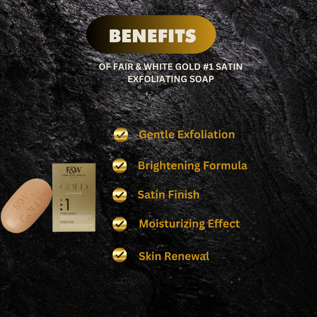 - Fair & White Gold #1 Satin Exfoliating Soap helps to gently exfoliate and brighten the skin
