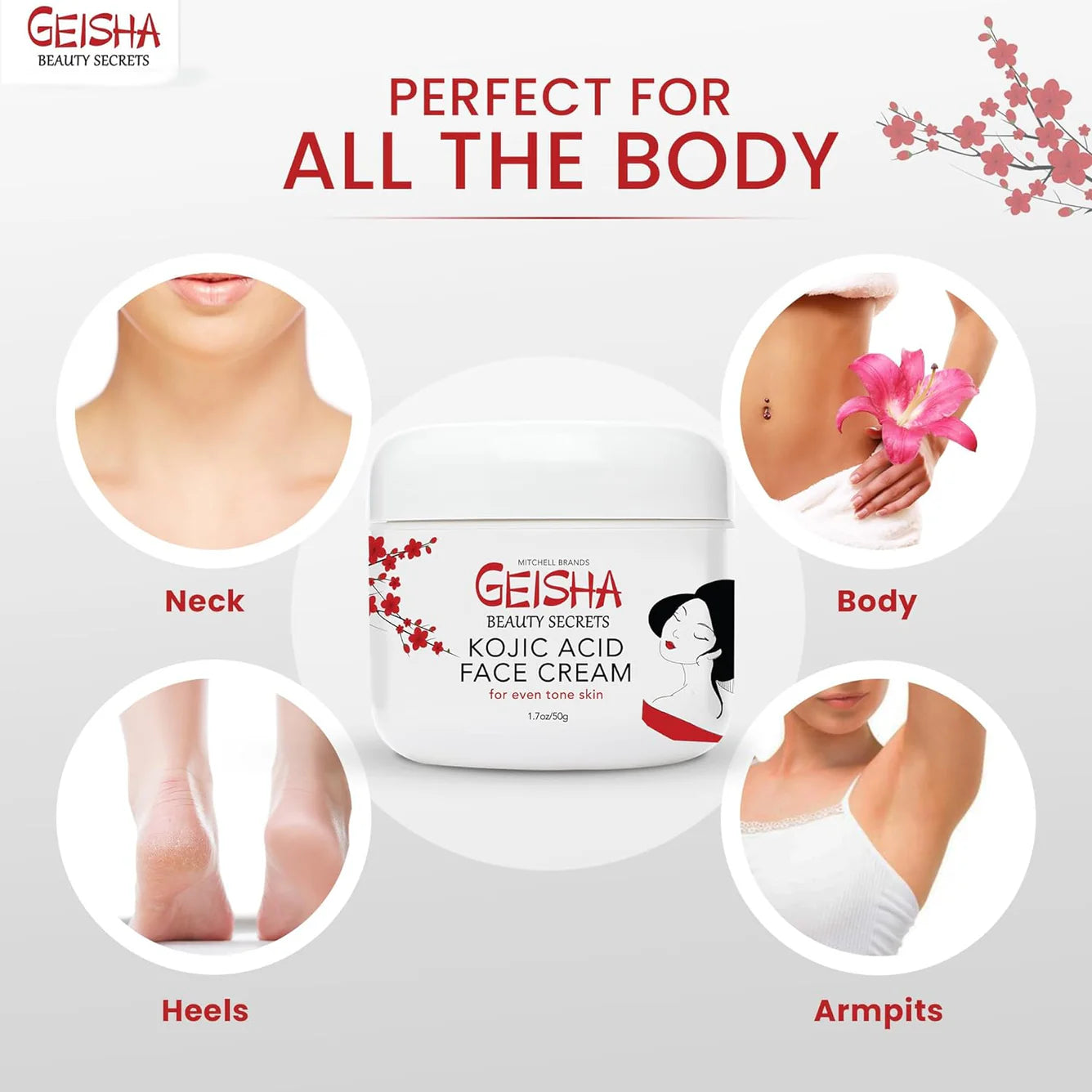The Geisha Active Lightening Cream with kojic acid is a skin brightening cream that diminishes dark spots and fades hyperpigmentation.