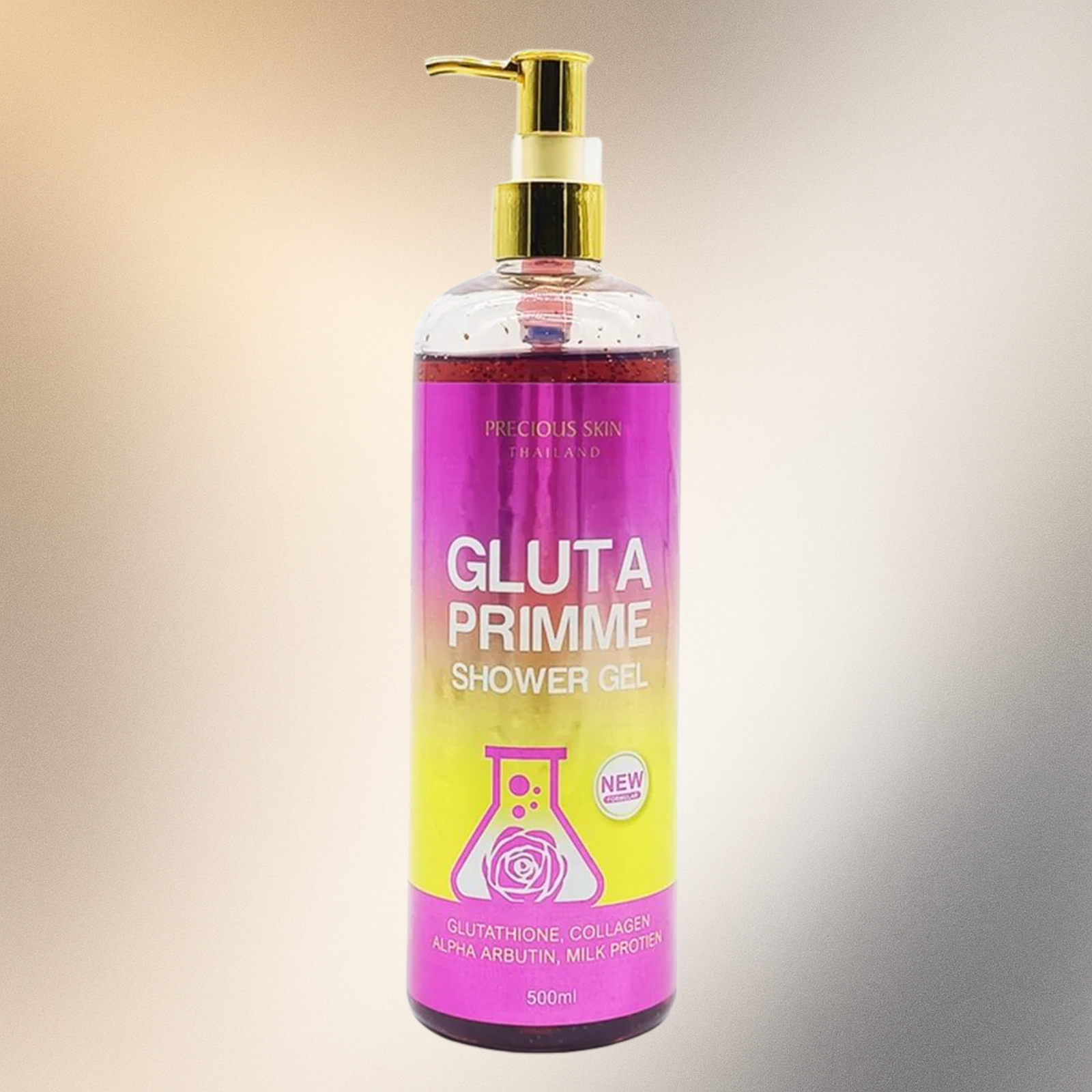 Luxurious Thai shower gel enriched with Glutathione, Collagen, Alpha Arbutin, and Milk Protein for visibly brighter, smoother, and nourished skin every day.