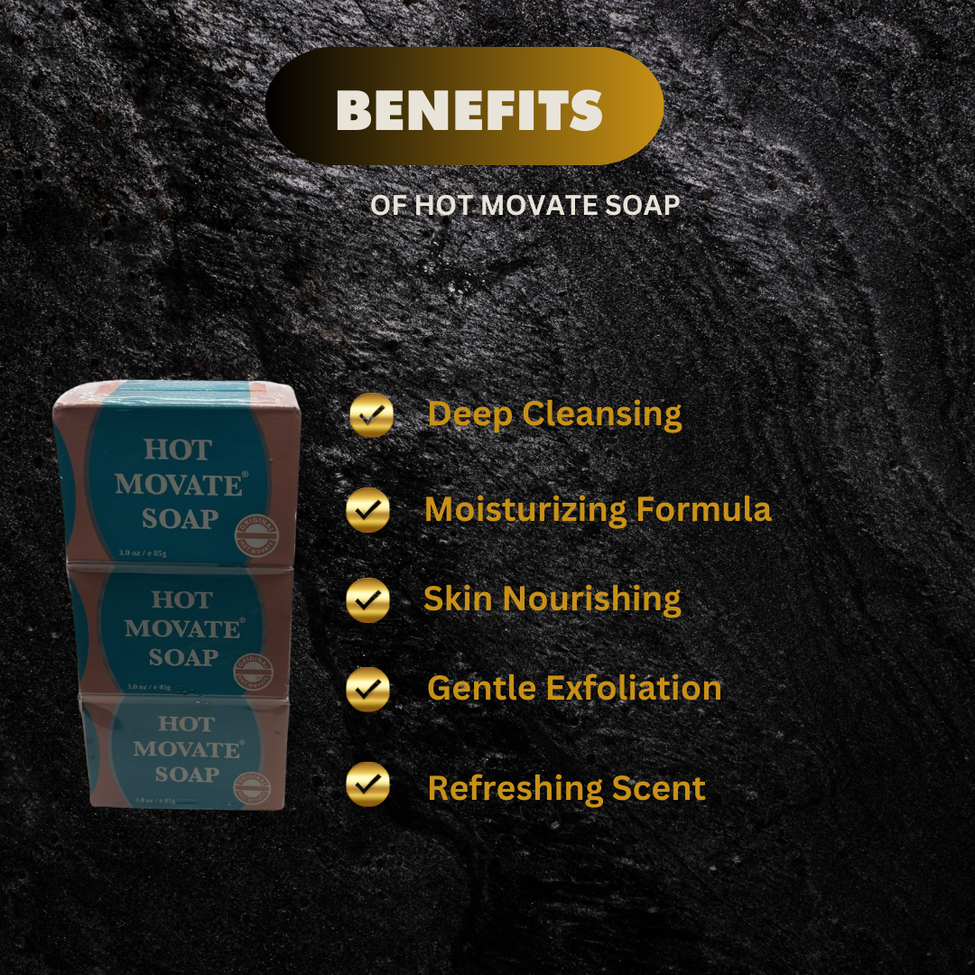 Hot Movate Soap with its high normal fixing gives a milder and smoother coloring adding scent and newness to you skin.