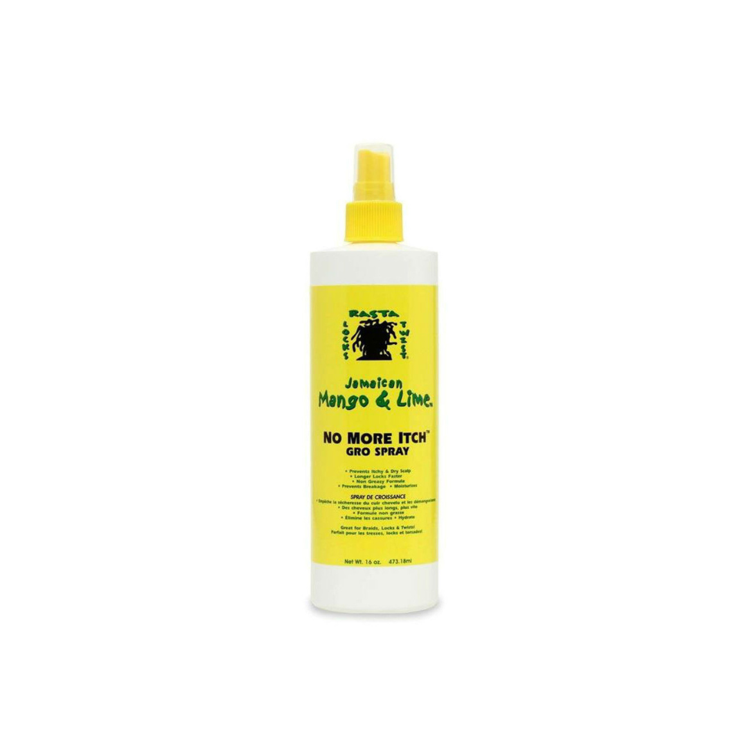Jamaican Mango & Lime No More Gro Itch Spray combines ancient Jamaican recipes and nourishing ingredients that create a product to start and maintain healthy, well-groomed locks and twists. This product is an invigorating root stimulator and cleanser that promotes healthy blood flow in the scalp, while moisturizing the hair.