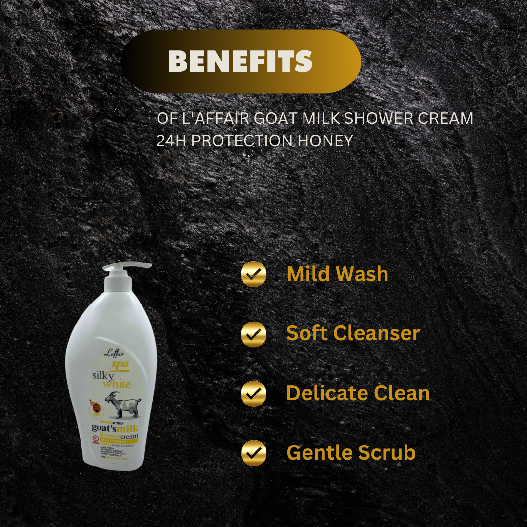 L'Affair, formulated with goat milk to provide 24-hour protection and triple moisturization. With a generous size of 1200mL, it ensures long-lasting hydration for the skin, leaving it soft and nourished.