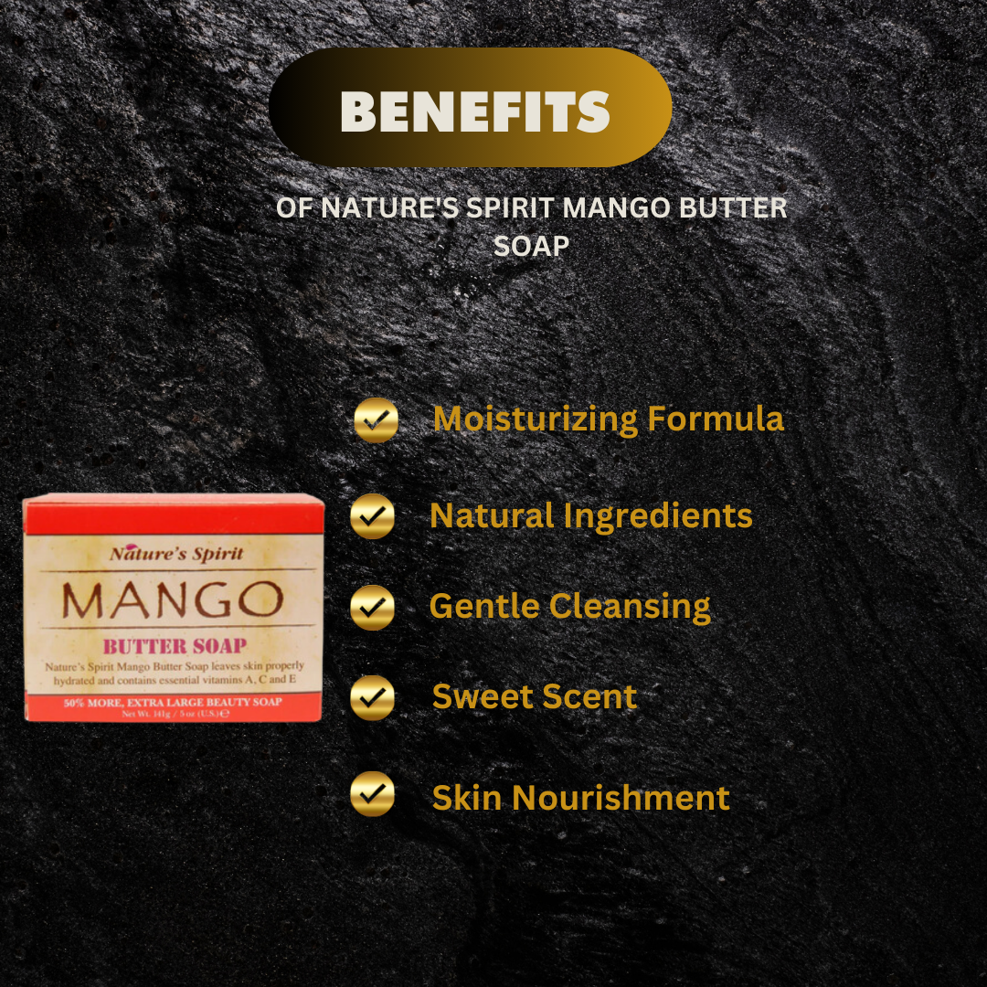 - Nature's Spirit Mango Butter Soap is a moisturizing and nourishing soap that cleanses and hydrates the skin.