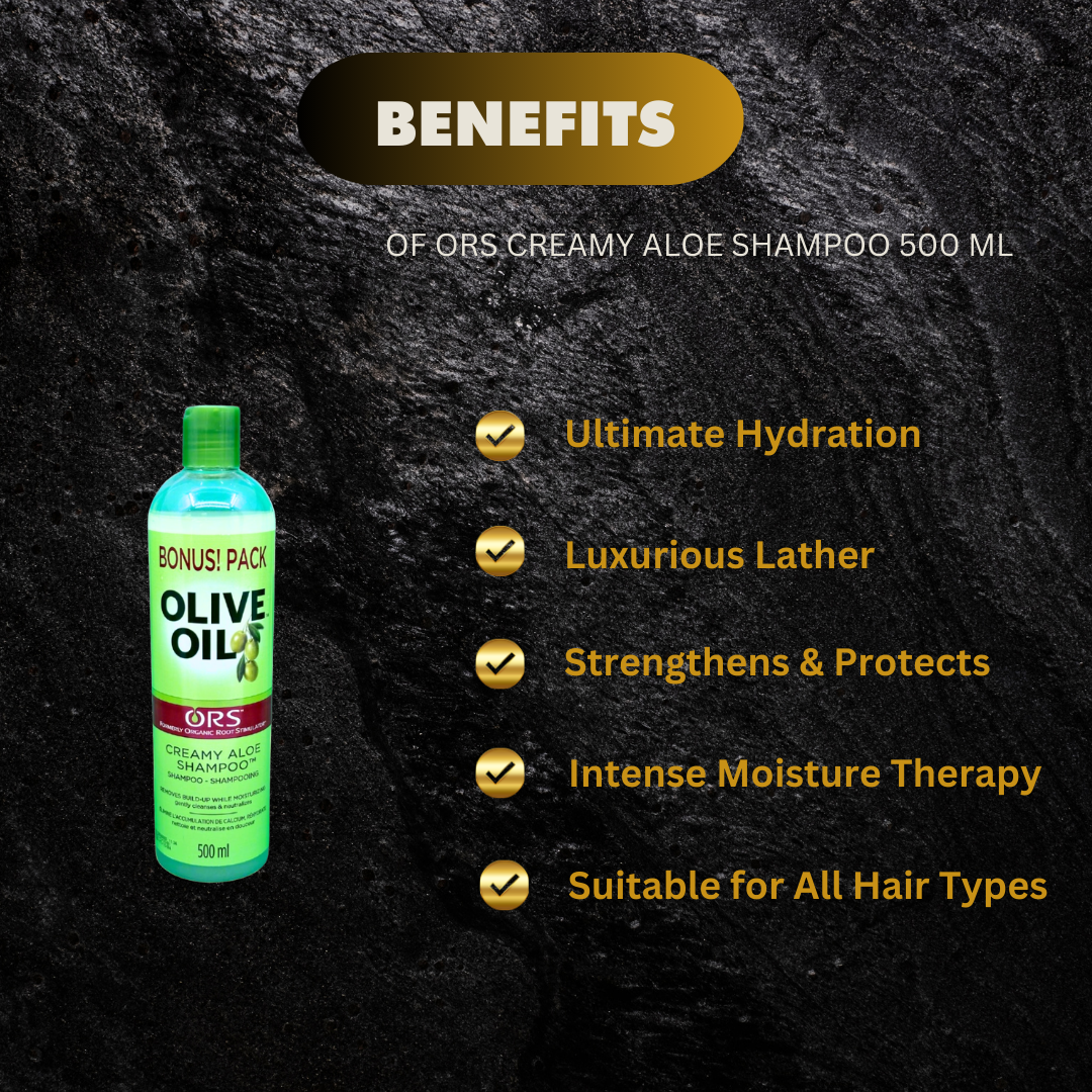 Infused with creamy aloe, this ORS shampoo gently cleanses and nourishes hair for a healthy, hydrated look. Its unique formula is perfect for all hair types and provides a deep clean without stripping hair of its natural oils. Experience softer, smoother, and more manageable hair with every wash.