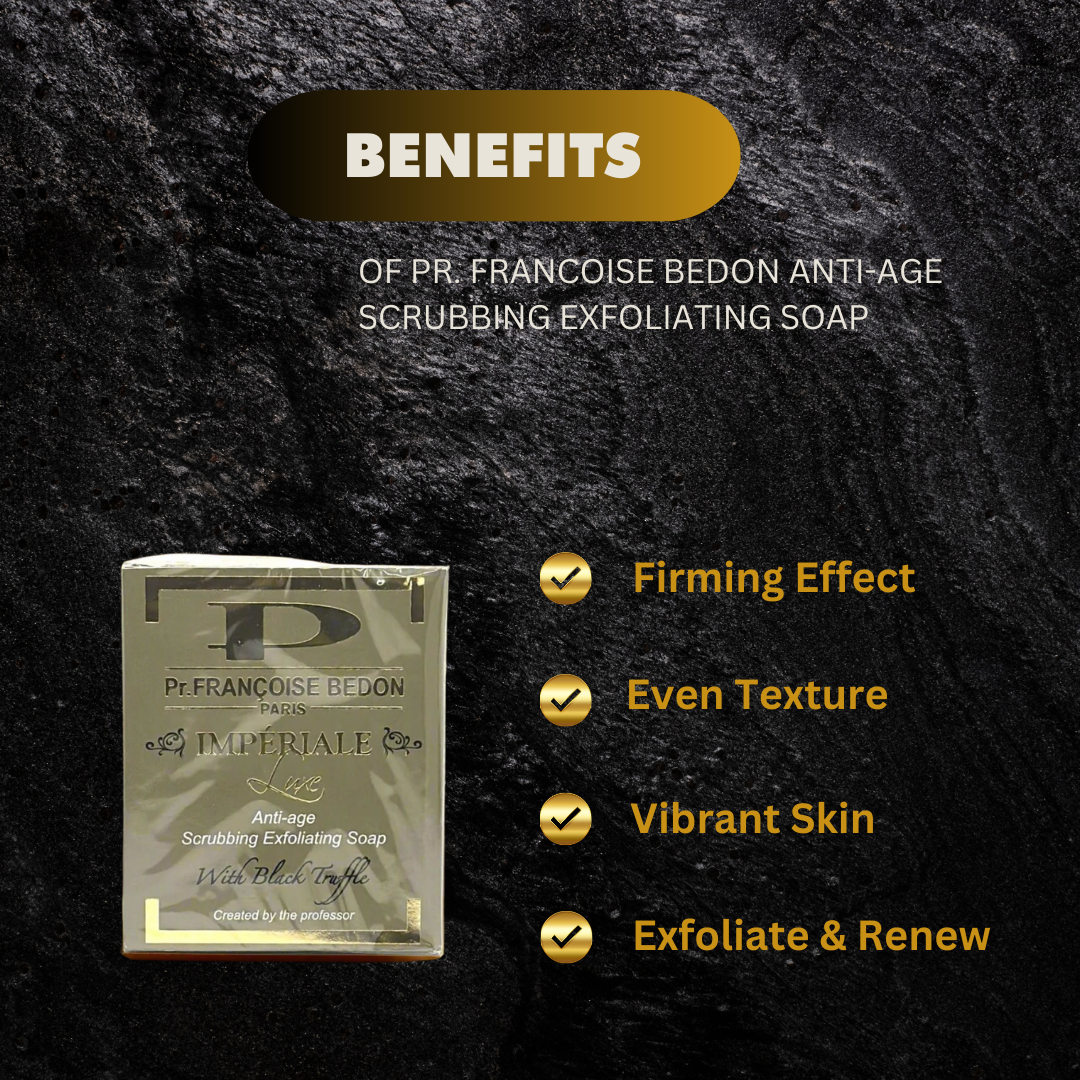 - Pr. Francoise Bedon Anti-Age Scrubbing Exfoliating Soap is a powerful soap designed to exfoliate and reduce the signs of aging on the skin.