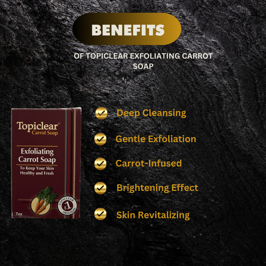 Topiclear Exfoliating Carrot Soap is a specially formulated soap designed to effectively cleanse and exfoliate the skin, while also helping to promote a brighter, more even skin tone. Infused with natural carrot extract, this soap is rich in vitamins and antioxidants that help to nourish and protect the skin. The exfoliating beads gently remove dead skin cells and impurities, leaving the skin feeling smooth, soft and refreshed. Ideal for daily use, this soap is suitable for all skin types.